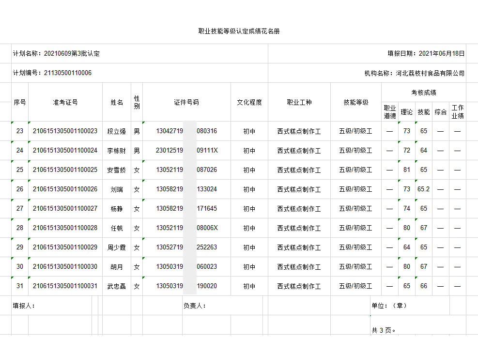 职业技能等级认定成绩花名册-6月公示