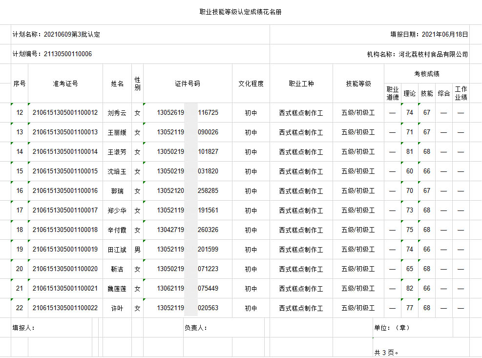 职业技能等级认定成绩花名册-公示
